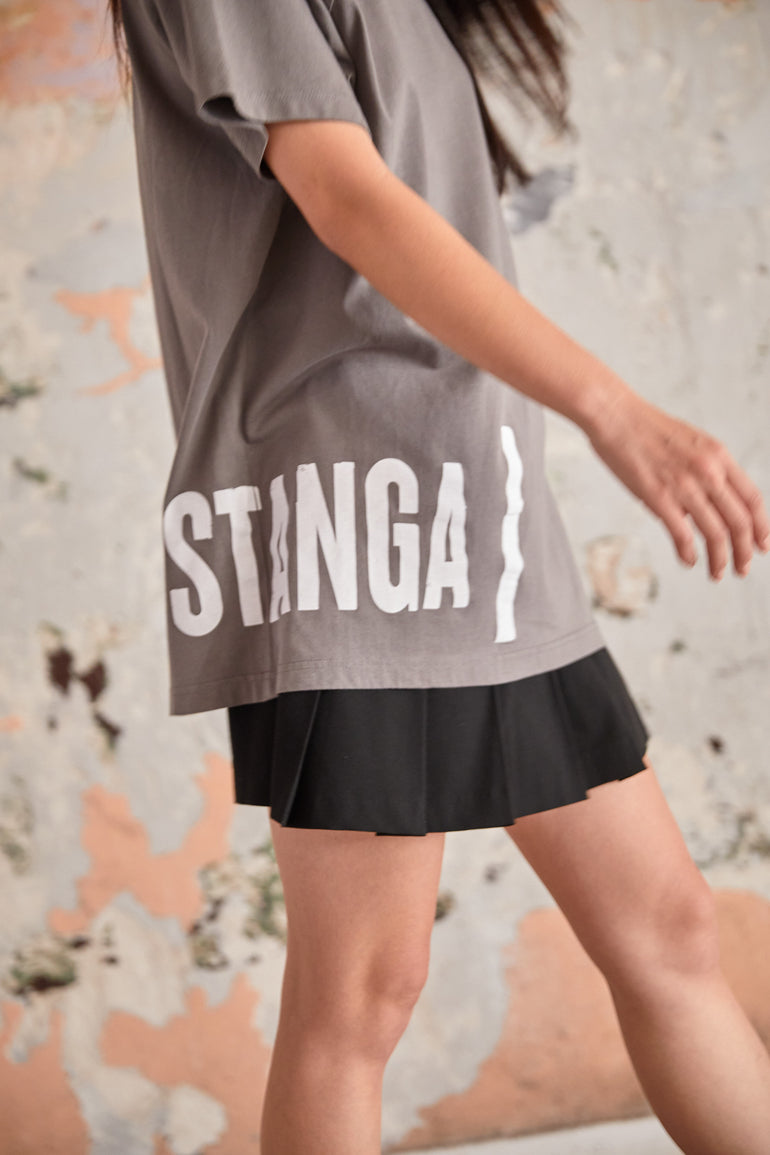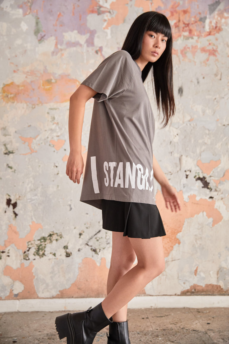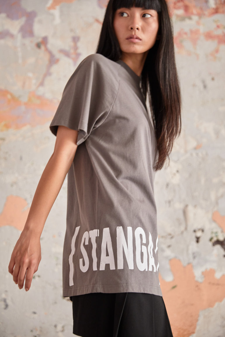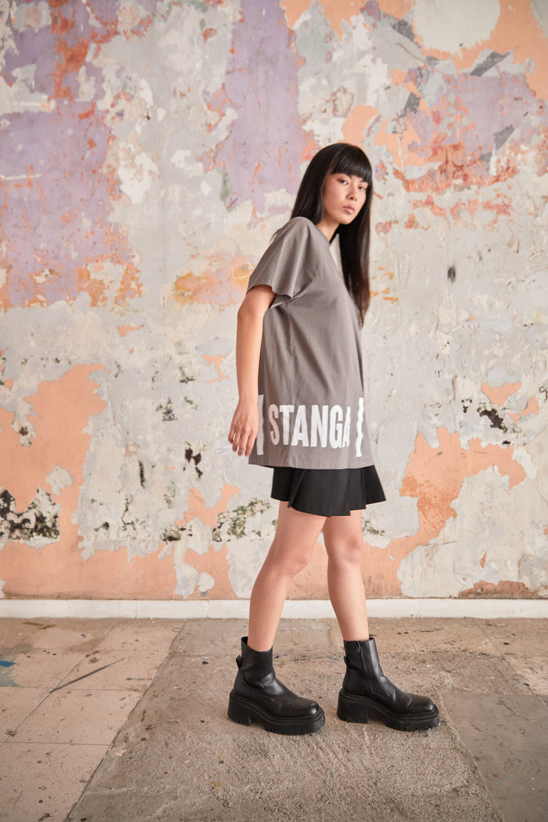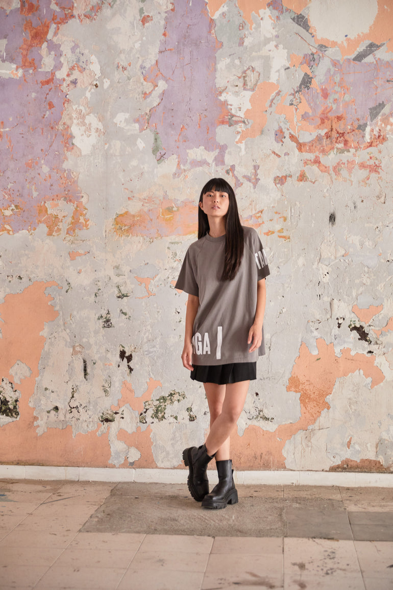 Gray Oversized T Shirt - "Sidelogo"